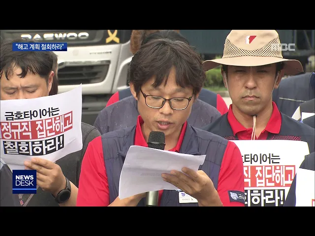 (앵커) 금호타이어가 이제 정상화하나 싶었는데 문제가 또 불거졌습니다. 비정규직 정리 해고 문제로 노사가 갈등을 예고하고 있습니다. 이계상 기자가 취재했습니다. (기자) -(해고는 살인이다 철회하라!)- 금호타이어 비정규직 노조원들이 근로자 12명에 대한 해고 계획을 철회하라고 촉구했습니다. 비정규직 노조는 타이...
