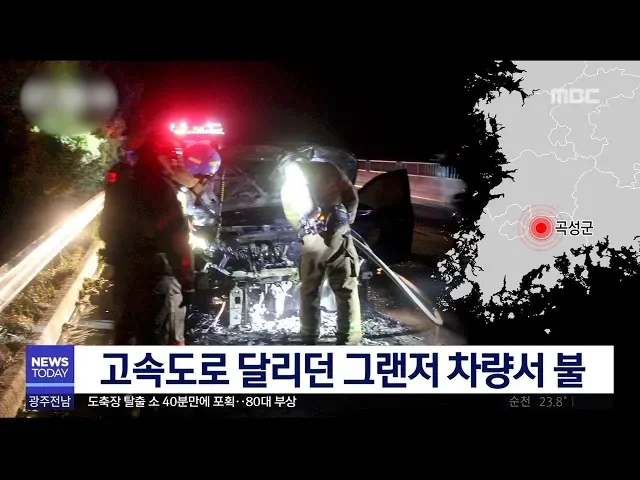 오늘(16) 새벽 2시 40분쯤, 곡성군 호남고속도로 광주방면 46km 지점에서 26살 배 모씨가 몰던 그랜저 차량에서 불이 나 소방서 추산 880여만 원의 재산피해를 내고 30분만에 꺼졌습니다. 경찰과 소방은 운행 도중 갑자기 엔진룸에서 불꽃이 일어 갓길에 정차했다는 운전자의 진술을 토대로 정확한 화재 원인을 조사하고 있...