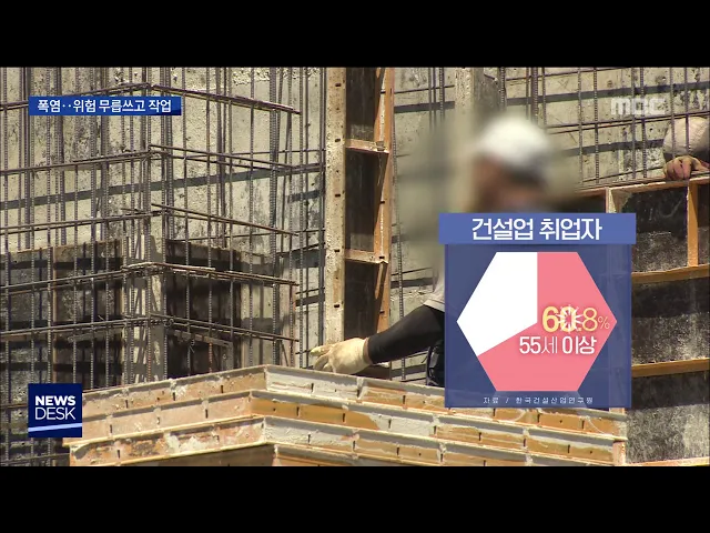 (앵커) 오늘 광주 풍암지역의 낮 최고기온이 40.1도를 기록했습니다. 이렇게 폭염이 심해지자 정부는 낮 시간에는 공사장의 작업을 중지하도록 했습니다. 하지만 실제 건설 현장의 사정은 달랐습니다. 보도에 이계상 기자입니다. (기자) 한 여름 뙤약볕 아래서 주택 건물을 짓는 작업이 한창입니다. 숨 쉬기조차 힘들 정도...