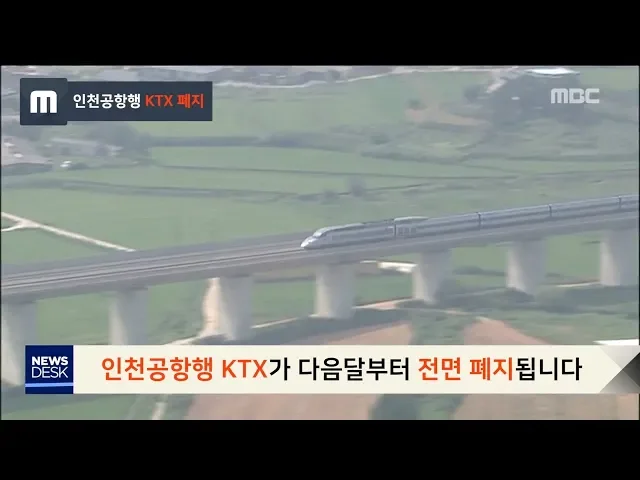 인천국제공항과 광주 등 지역을 연결하는 인천공항행 KTX가 다음달부터 전면 폐지됩니다. 국토교통부는 인천공항행 KTX 운행을 전면 중단하는 계획이 포함된 코레일의 철도사업계획 변경 신청서를 지난 달 30일 원안대로 최종 인가했습니다. 코레일은 그동안 승객이 많은 KTX의 공항철도 열차가 지역을 오가는 인천공항행 ...