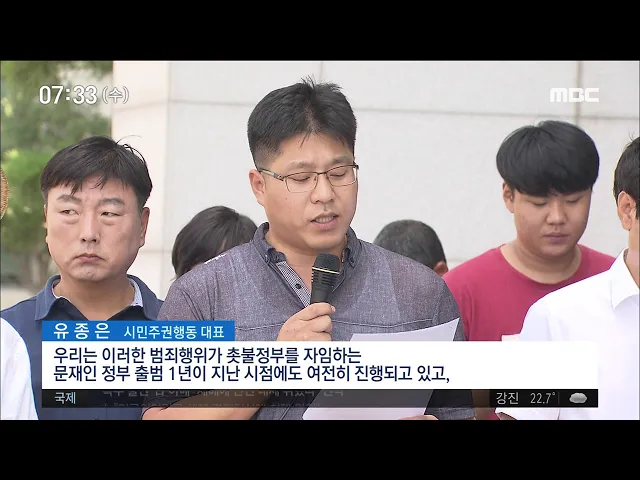 광주 시민사회단체가 5.18 38주년 추모 기간에 경찰이 시민사회단체를 불법 사찰했다며 진상 조사를 촉구했습니다. ◀VCR▶ (인터뷰)유종은/시민주권행동 대표 "우리는 이러한 범죄행위가 촛불정부를 자임하는 문재인 정부 출범 1년이 지난 시점에도 여전히 진행되고 있고, 더욱이 민주, 인권, 평화의 정신이 충만해야 할 ...