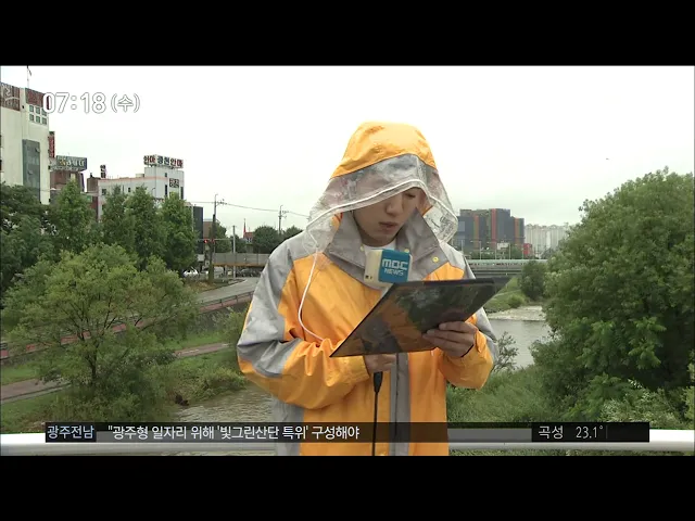 (앵커) 오늘 새벽부터 광주와 전남 지역에 많은 장맛비가 내리고 있습니다. 집중 호우와 함께 일부 지역엔 최대 150mm가 넘는 많은 비가 예상되고 있습니다. 취재 기자 연결해 자세한 소식 들어보겠습니다. 송정근 기자, 지금 비가 많이 내립니까? (기자) 네, 제가 지금 나와 있는 광천교는 보시는 것처럼 많은 비가 내리고...