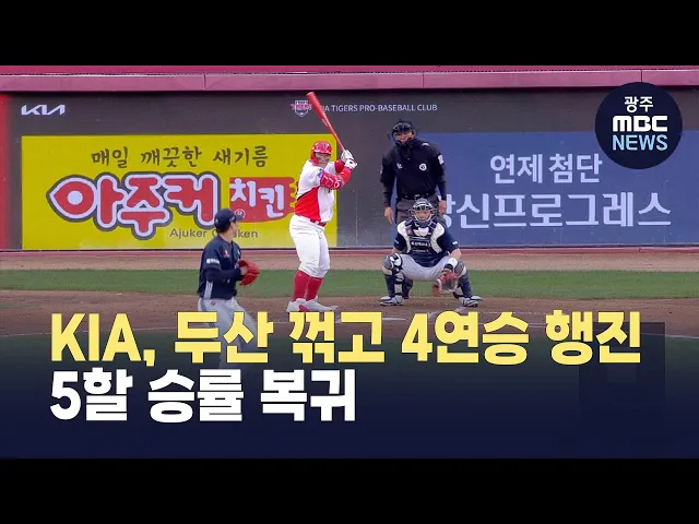 KIA, 두산 꺾고 4연승 행진.. 5할 승률 복귀