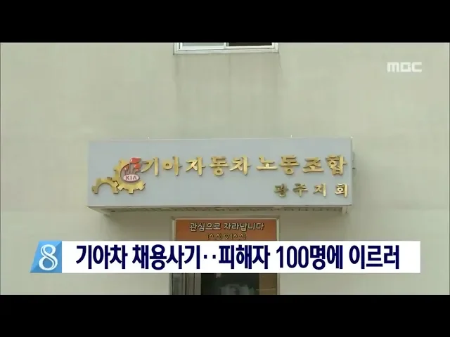 경찰이 기아자동차 전 노조 간부 등이 연루된 기아차 채용사기 사건을 수사한 결과 피해자가 100명에 가까운 것으로 확인됐습니다. 광주지방경찰청 광역수사대는 기아차와 기아차 하청업체 취업을 미끼로 지인 39 명에게 13억원을 가로챈 기아차 하청업체 직원 37살 김 모 씨와 17 명에게 5억원을 가로챈 기아차 노조 전 ...