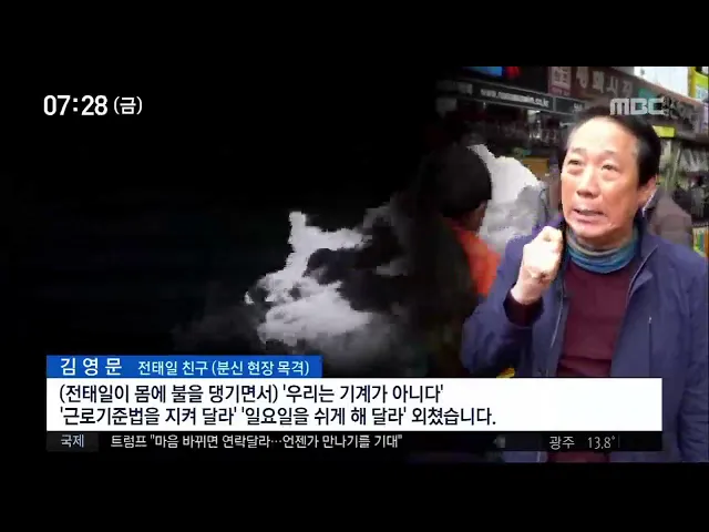 (앵커) 특집 다큐 두개의 일기를 미리 보는 연속 보도, 오늘은 윤상원 열사에게 깊은 영향을 줬던 전태일 열사의 삶을 되돌아 봅니다. 죽음으로써 한국 사회를 깨운 전태일 열사의 일기나 편지 등을 살펴보면 가혹했던 노동 현실과 그에 대한 문제의식이 강하게 드러나 있습니다. 보도에 김철원 기자입니다. (기자) 지독한 ...