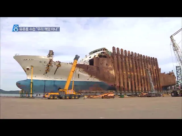 ◀ANC▶ 세월호가 바로 선 이후 선체에서 희생자들의 유류품이 잇따라 발견되고 있습니다. 그런데 해양수산부와 선체조사위원회가 서로 책임을 미루면서 유류품 수습이 또 다시 유가족들의 몫이 되고 있습니다. 김진선 기자입니다. ◀END▶ ◀VCR▶ 세월호 좌현에서 떼어낸 철제 지지대. 선체에 맞닿았던 면에는 교복이 ...