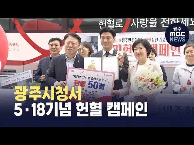 광주시가 내일(16)까지 이틀간 시청 행정동 앞 헌혈버스에서 공직자와 시민이 함께하는 사랑의 헌혈 캠페인을 이어갑니다.제45주년 5‧18민주화운동 기념 주간에 맞춰80년 5월 자발적 헌혈에 동참했던 시민의식과 생명나눔 정신을 계승하기 위해 마련됐습니다.한편 광주에 주소를 두고 최근 5년 이내 10회 이상 헌혈한 시민...