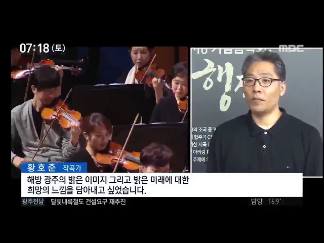 (앵커) 민주화 운동을 상징하는 노래, 임을 위한 행진곡이 올해도 5.18 묘역에서 제창됐습니다. 이명박 박근혜 정권 내내 질곡의 역사를 함께 했던 이 노래가 관현악 등 다양한 콘텐츠로 재탄생했습니다. 이계상 기자.. (기자) 빠암 빰 빰 빰~~~ 귀에 익숙한 관현악 선율이 광주 문예회관 대극장에 울려퍼집니다. 5.18민중...