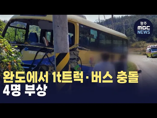 완도에서 1t트럭-버스 충돌.. 4명 부상