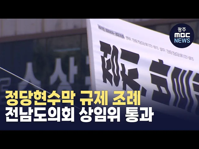전남에서도 정당현수막 설치 장소와개수, 내용을 제한하는 규제가 추진됩니다.전남도의회는 강문성 의원이 대표 발의한옥외광고물 등 관리 조례 일부 개정안이해당 상임위원회 심사를 통과했다고 밝혔습니다.조례안의 주요 내용은 정당이 현수막을 지정게시대에 설치하고읍·면·동별로 2개 이하 게시, 허위나, 혐오, 비방의 ...