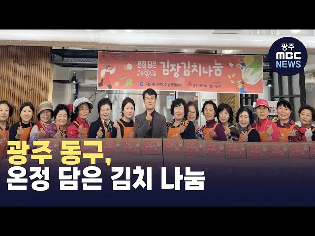 광주 동구 주민들이 담근 김치가 관내 취약계층에게 전달됐습니다. 광주 동구 지산 1동 지역사회보장협의체는 지난 24일 '온정 담은 김장 김치 나눔' 행사를 열고, 주민들이 직접 버무린 김치 600kg을 취약 계층 1백 세대에 전달했다고 밝혔습니다.이에 앞서 지난 22일, 김치의 날을 맞아 열린 제1회 대한민국 김치대전에서...