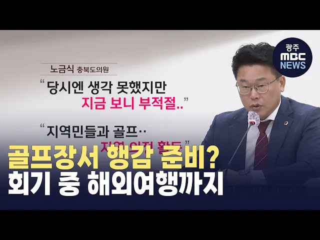 (앵커)행정사무감사와 내년도 예산안을 처리하고 있는 충북도의회는연중 가장 중요한 일정을 소화하고 있습니다. 그런데 한 도의원이 골프를 치고 해외여행까지 다녀온 사실이 드러났습니다. MBC 충북 정재영 기자의 보도입니다.(기자)이달 초, 충북 도정에 대한 행정사무감사에 돌입한 충북도의회. 상임위마다 연일 의회와...