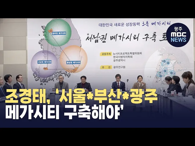 조경태 국민의힘 뉴시티 특위위원장이 서울*부산*광주를 3축으로 한 '메가시티'를 구축해 지방소멸과 저출산 위기를 극복해야 한다고 강조했습니다.조 위원장은 오늘(4일) 광주 김대중컨벤션센터에서 열린 '서남권 메가시티 구축 토론회' 참석에 이같이 말하고"광주는 문화특별시, 부산은 해양특별시와 같은 방식으로 균형...