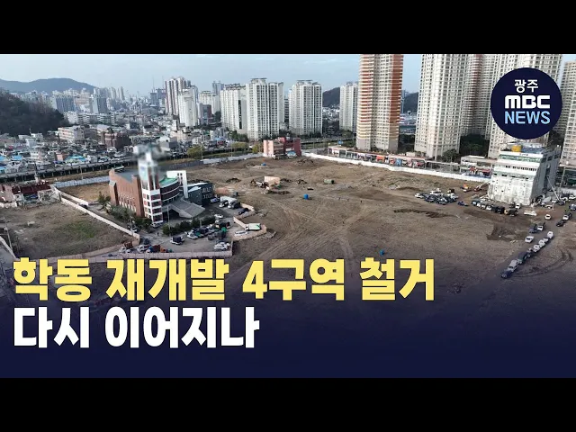 (앵커)붕괴 사고로 중단됐던 학동 재개발 4구역에선철거 작업이 진행 중인데요 끝까지 이주를 거부하고 있던 일부 건물에 대해법원이 강제 집행에 나섰습니다. 철거 작업과 재개발 사업이 다시 안전하게 이어질 수 있을지, 임지은 기자가 취재했습니다. (기자)17명의 사상자가 발생한 광주 학동 4구역 재개발 사업 구역.노...