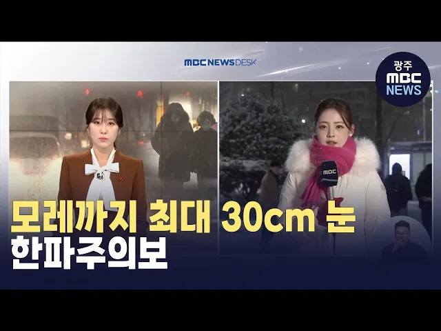 (앵커)오늘 오전부터 내리기 시작한 눈이 밤에도 계속 이어지고 있습니다.광주와 전남 서부권에는 현재 대설특보가 발효돼 있는 상태인데요.모레까지 최대 30CM의 눈이 내릴 것으로예보되고 있습니다.현장에 나가 있는 기상캐스터 연결해서자세히 알아보겠습니다.이다솔 기상캐스터 지금도 눈이 많이 내리고 있나요?(기상캐...