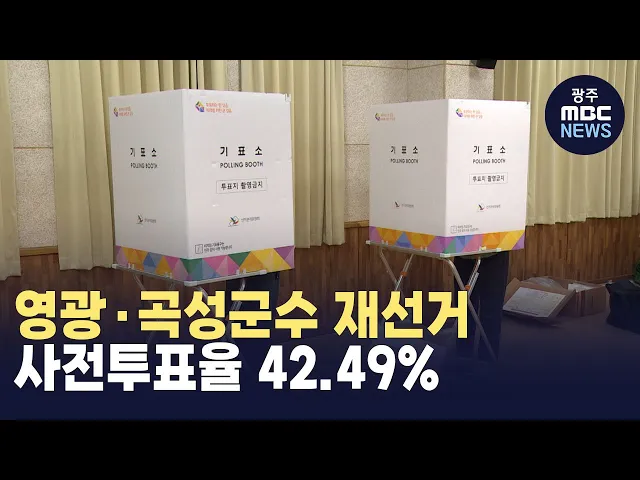 어제(11일)부터 이틀간 진행된영광·곡성군수 재선거 사전투표가참여율 42%를 기록했습니다.지역별로 보면, 영광은 선거인 전체의 43%인 1만 9천여 명이 참여했고,곡성은 선거인 전체의 41%인 1만여 명이 투표했습니다.이는 서울시교육감 보궐선거 사전투표율 8%,인천 강화군수 보궐선거 사전투표율 28%보다 높은 수치이며,...