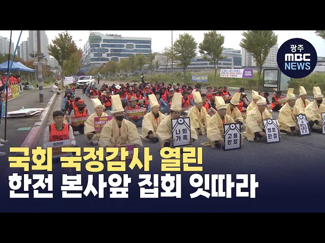 국회 국정감사 열린 한전 본사앞 집회 잇따라