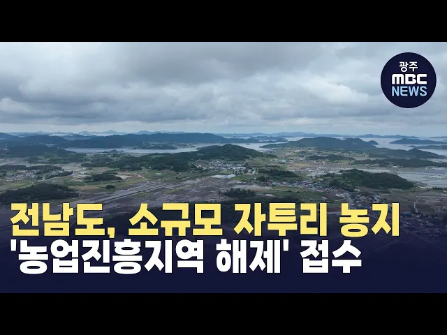 전라남도가 농촌 정주여건을 개선하고지역산업을 육성하기 위한 소규모 자투리 농지의 농업진흥지역 해제 신청을 이달 말까지 접수받습니다.신청 대상은 도로와 택지 등 개발 후 남은 3핵타르 이하 자투리 농지로 농업진흥지역이 해제되면 이용규제가 완화돼 문화복지시설과체육시설 등 주민 편의 시설 설치가확대될 것으로...