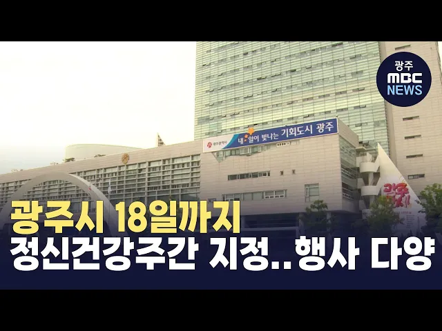 광주시가 세계 정신 건강의 날을 기념해 5개 자치구와 함께 정신건강 문화 행사를 마련했습니다. 광주시는 이번 달 7일부터 18일까지를 '정신 건강 주간'으로 지정하고 5개 자치구별로 우리 동네 정신건강 캠페인을 여는 등 광주 시민들의 정신건강을 살피는 여러 체험행사를 준비했다고 밝혔습니다. 오는 18일, 광주시청 ...
