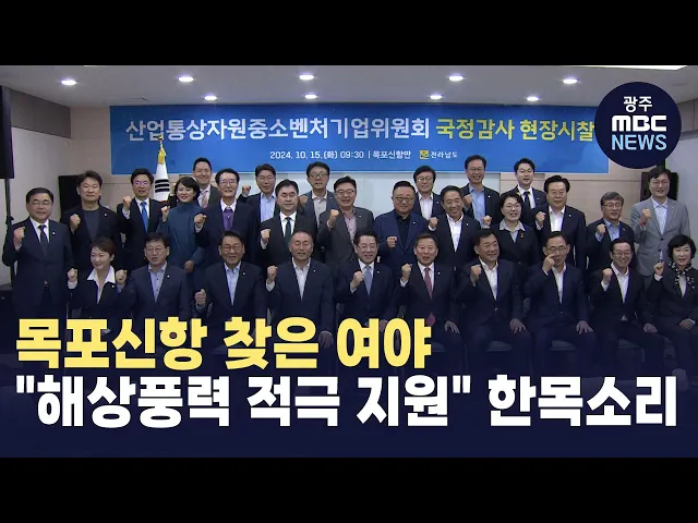 (앵커)정부의 재생에너지 규제 정책이 지난 9월부터시작된 가운데 국회 산자위 소속 여야 위원들이 목포신항을 찾았습니다.너나할것 없이 "해상풍력산업 지원"을 약속했는데 전남도와 신안군은 산자위원들에게 전력계통 구축과 해상풍력 특별법 제정을 요청했습니다.신광하 기자가 보도합니다.(기자)국회 산자중기위 소속 ...