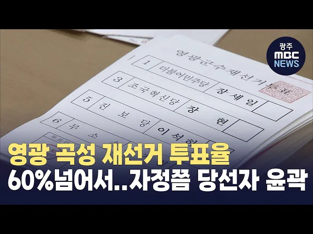 영광*곡성 재선거 투표율이60%를 넘어섰습니다.중앙선거관리위원회에 따르면오늘(16) 오후 4시를 기준으로영광은 65.3%, 곡성은 61%의투표율을 기록하고 있습니다.이번 재선거 투표시간은 밤 8시까지이며,신분증을 지참해 지정된 투표소를방문해야 한 표를 행사할 수 있습니다.당선자 윤곽은 자정을 전후해 드러날 예정이며...