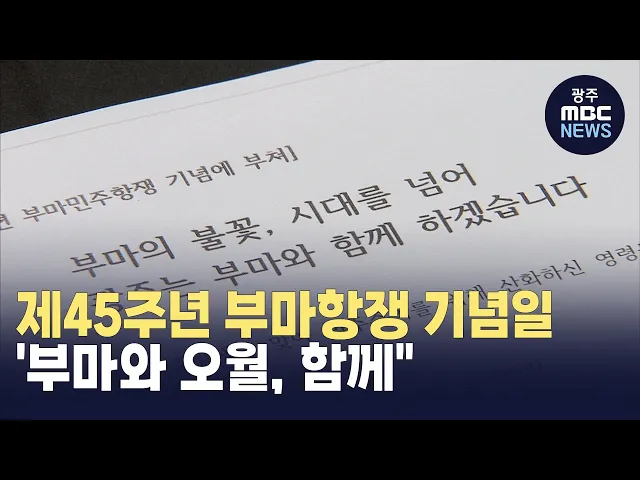 제 45주년 부마민주항쟁 기념일을 맞아광주시가 부산, 마산과 연대를 강화하고,민주화운동 역사를 헌법 전문에 수록하겠다고 다짐했습니다.광주시는 어제(16) 입장문을 내고민주주의를 위해 산화한 영령들의숭고한 뜻을 기리고 추모한다며부마 민주항쟁 정신은 5.18과 6.10으로 계승돼 이 땅의 민주주의를 지켜냈다고 평가...