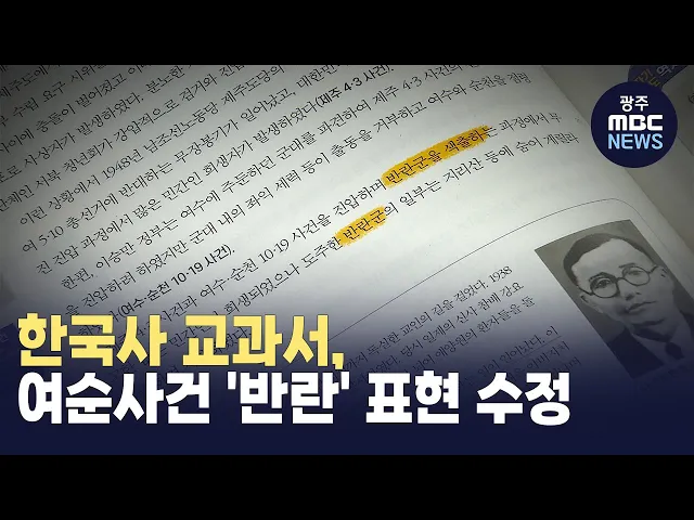 여순사건을 '반란' 등으로 기술한고등학교 한국사 검정 교과서에서 해당 표현이 수정됐습니다.교육부가 더불어민주당 김문수 의원실에 제공한 자료를 보면,여순사건을 반란, 반군 등으로 표현한교과서 다섯 종에 해당 문구가 바뀐 것으로 확인됐습니다.이번 조치는 출판사의 수정 요청을교육부가 승인하면서 이뤄졌으며,바...