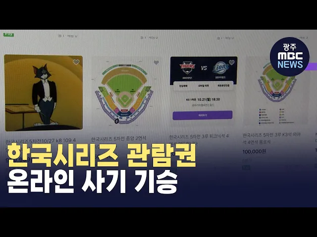 프로야구 한국시리즈 경기 관람권을 두고온라인 거래 사기 신고가 잇따라 접수되고 있습니다.광주경찰청 등에 따르면온라인 중고거래 사이트 등에서 돈을 주고도 관람권을 받지 못했다는 신고가 214건 접수됐습니다.경찰은 프로 야구 인기로 온라인에서 암표 거래가 늘어나면서 관람권 판매 사기도기승을 부리는 것으로 보...