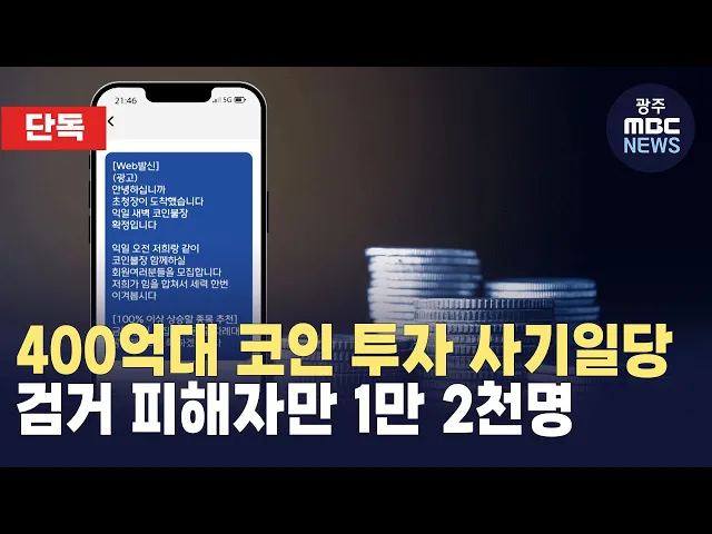 (앵커)요즘 코인 상승세로 투자에 관심이 많으신 분들 있으실텐데요.이를 악용해 노인들을 상대로코인 투자 사기 행각을 벌인 일당이 경찰에 검거됐습니다.피해자만 1만 명이 넘고, 피해액은 400억 원대에 이릅니다.김영창 기자가 단독취재했습니다. (기자)누구나 한 번쯤은 받아 봤을 고수익 보장에 따른 코인 투자를유도...