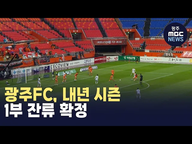 프로축구 광주FC가내년 시즌에도 1부 무대에서 뛰게 됐습니다.광주FC는어제(10) 열린 제주 유나이티드와의 경기에서득점없이 0대 0으로 비기며승점 1점을 추가해 남은 최종전 결과와 상관없이내년 시즌 1부 무대 잔류를 확정했습니다.광주FC는 올 시즌14승 4무 19패, 승점 46점으로리그 8위를 기록하고 있는데,오는 24일 전...