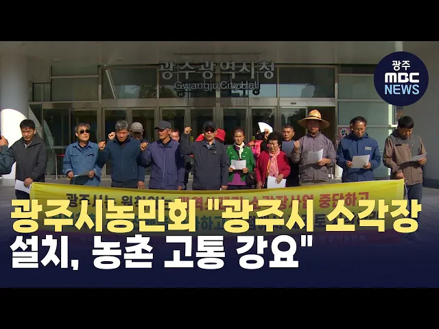 전국농민회총연맹 광주시농민회는 오늘(13일) 광주시청 앞에서 기자회견을 열고, "광주시는 농촌 지역 피해만 가중하는 소각장 설치 계획을 전면 백지화해야 한다"고 주장했습니다.농민회는 "도심 소각장을 폐쇄하더니 환경과 고향을 지키며 살아가는 농촌 주민들에게 고통만 강요하는 것"이라고 밝혔습니다.또 "택지 지구...