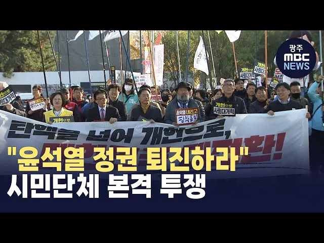 (앵커)오늘 주말 광주 도심에는 150여개의 시민단체를 중심으로 윤석열 정권 퇴진을 요구하는 집회가 열렸습니다.본격적인 대통령 퇴진운동에 돌입한시민단체는 앞으로도 대규모 집회를 계속 이어간다는 계획입니다.보도에 김영창 기자입니다.(기자)윤석열 정권 퇴진을 요구하는 시민단체와 시민들이 도심 한복판을 행진합...