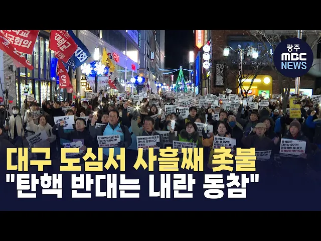(앵커)윤석열 대통령 탄핵을 촉구하는 목소리는전국 곳곳에서 들불처럼 번지고 있습니다.윤석열 대통령 지지세가 강한 대구경북지역도 마찬가지입니다.탄핵 반대를 당론으로 채택한 국민의힘에대해서는 사실상 내란을 방조하는 거라며 비난의 목소리가 쏟아졌습니다.먼저 대구문화방송 도건협 기자가 보도합니다.(기자)국민...
