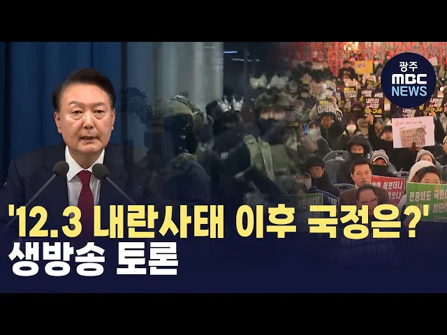 12.3 내란사태 이후국정 안정화 방안을 살펴보는 토론이 생방송됩니다.광주MBC는 잠시 뒤 9시부터 시사토론 프로그램인 '시사용광로' 시간에모레(14)로 예정된대통령 2차 탄핵안 표결 전망을 분석하는 한편내란 사태 수사가향후 정국에 어떤 영향을 미칠지 이야기 나눠봅니다.오늘 토론에는 최용선 더불어민주당 민주연구원...