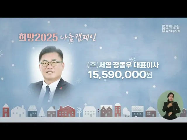 '희망 2025 나눔 캠페인' 에 성금을 보내주신 분들입니다.(주)서영 장동우 대표이사 15,590,000