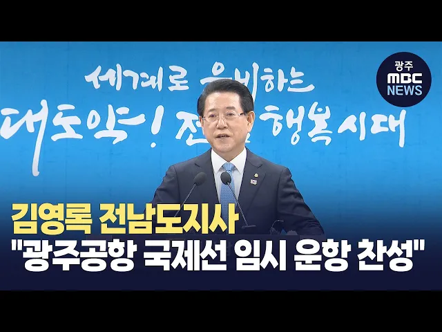 김영록 전남지사는광주시가 광주공항 국제선 임시 운항을정부에 건의하는 것에 찬성한다는 입장을 밝혔습니다.김 지사는 "무안국제공항 폐쇄로 여행 업계가 대단히 큰 어려움이 있다"며 "어려움을 덜 수 있다고 하면 반대할 이유가 없다"고 말했습니다.또, "강 시장께서 제대로 된 서남권 관문공항과 공항 도시 조성을 위해...