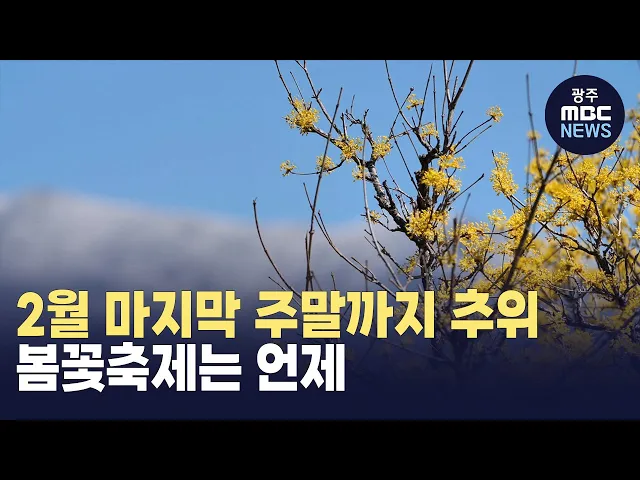 (앵커)2월 마지막 주말에도 추위가 꺾일 줄 모릅니다.동장군이 물러날 기미를 보이지 않자 지자체들은 봄꽃 축제 일정을 늦추고 있습니다.추위는 다음주 초까지 이어지겠고 일요일인 내일도 눈 소식이 있습니다.박수인 기잡니다.(기자)간밤에 또 눈이 내렸습니다.올 겨울 유난히 길고 매서운 추위 때문에 무등산엔 눈 녹을 ...