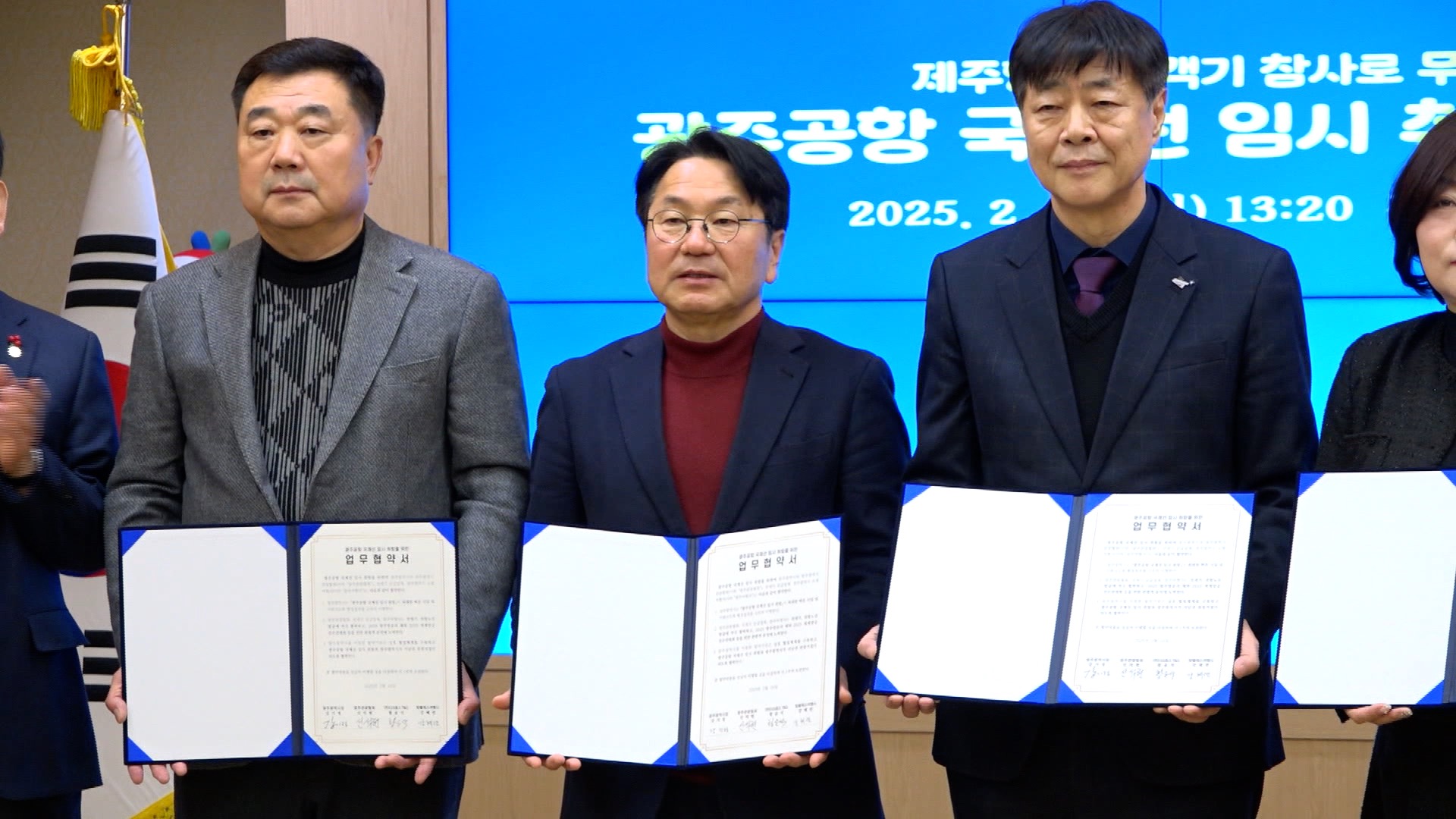 광주시와 지역 관광업계가 ‘광주공항 국제선 임시 취항'에 공동 대응하기로 했습니다.이들은 업무협약을 체결하고,무안공항 운영 재개 전까지 광주공항에 국제선이 취항되도록정부 건의 등의 조속한 행정절차와 전세기·취항노선 발굴에 협업하기로 했습니다.한편 최근 김영록 전남지사도 "무안공항 폐쇄에 따른여행업계의 ...