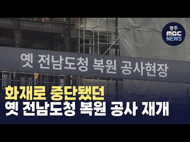 화재로 중단됐던 옛 전남도청 복원공사가조만간 재개됩니다.옛 전남도청 복원추진단에 따르면지난 1월 화재가 발생한옛 전남도청 경찰국의건축물 안전을 점검한 결과구조물에 이상이 없는 것으로 확인됐습니다.추진단은 이에따라 안전 점검 결과 보고서가 나오는 대로복원 공사를 재개할 방침입니다.