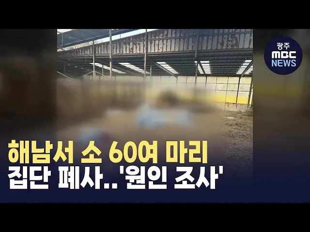 어제(9) 오후 13시 30분쯤해남군 송지면의 한 축사에서 '소 떼가 죽어있다는' 신고가 접수돼 경찰과 지자체가 원인조사에 나섰습니다.경찰 조사 결과 전체 소 67마리 가운데 63마리가 죽은 것으로 조사됐으며,해남군 등 축산당국은죽은 소의 시료 채취 등을 통해정확한 원인 파악에 나섰습니다.