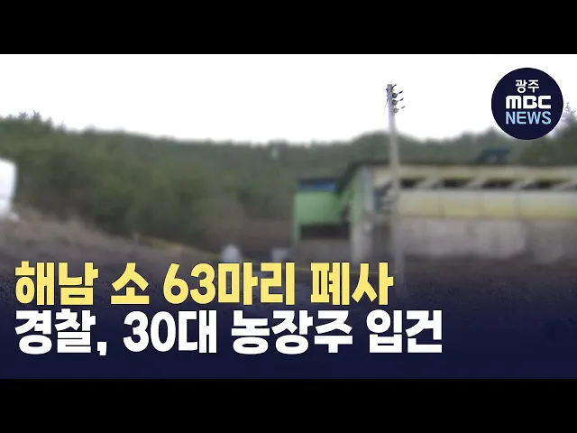 해남경찰서는 최근 해남의 한 농장에서 소 63마리가 폐사한 채 발견된 것과 관련해30대 농장주를 동물보호법 위반 혐의로입건했습니다.경찰은 해당 농장주가 최근 일정이 있어 관리를 못했다고 진술한 점과폐사한 소들의 야윈 상태 등을 토대로소들이 관리 소홀로 굶어죽었을 가능성이 높은 것으로 보고 정확한 원인을 조사...