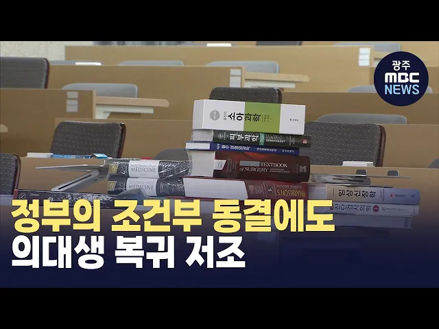 정부의 조건부 모집인원 동결에도 지역 의대생들의 복귀가저조한 것으로 나타났습니다.전남대에 따르면신학기를 앞두고 복학한 의대생은 30여명에 그쳐 재적 인원의 80% 가까운 의대생들이 아직까지 학교에 돌아오지 않고 있습니다.조선대 의대 역시 신입생을 포함한 재적 인원 878명 가운데 190명만 재학하고 있습니다.정...