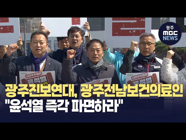 윤석열 대통령 파면을 촉구하는 광주전남 릴레이 기자회견이 오늘도(17) 이어졌습니다.광주진보연대는 "12.3 비상계엄 이후 100일이 넘었지만, 헌법재판소가 아직 선고 날짜조차 잡지 못하면서 극심한 혼란에 빠져있다"며"이번 주에 반드시 윤석열을 파면할 것을 강력히 촉구한다"고 말했습니다.광주전남 보건 의료인들도 ...