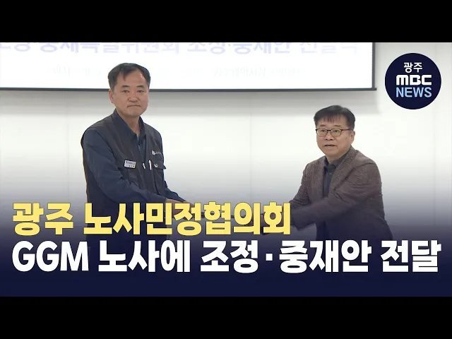 광주시 노사민정협의회 조정·중재특별위원회는 오늘(2일) 오전 광주시청에서 광주글로벌모터스 경영진과 노동조합, 광주시에 갈등현안 조정·중재안을 전달했습니다.특위는 조정·중재안을 통해경영진에는 노조 사무실 제공과단체교섭 시 근로시간 면제 확대 등을,노조에는 35만 대 생산까지 파업유보 등을 권고했습니다.GGM ...