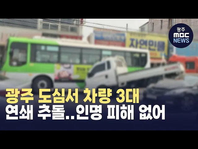 오늘(8) 오전 10시쯤광주 북구 누문동의 한 도로에서 승용차와 트럭, 시내버스가 잇따라 부딪혔습니다.이 사고로 인명피해는 없었지만, 4개 차선 중 3개 차선이 통제되면서한동안 차량이 막혔습니다.경찰은 승용차가 앞서가던 트럭을 들이받고, 이 여파로 트럭이 멈춰있던 시내버스와 부딪힌 것으로 보고 정확한 경위를 조...