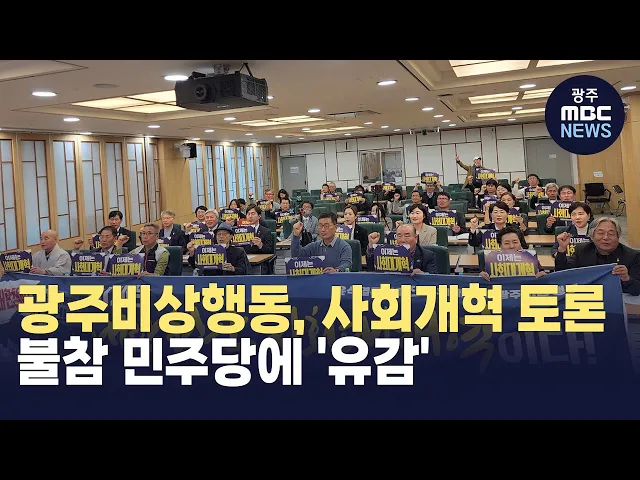 광주 시민단체 180여 곳이 모여 만든광주비상행동은 사회개혁 등을 논의하는 토론회에민주당이 불참한 것에 대해유감을 표했습니다.비상행동은 오늘(9일) 오전 성명서를 내고,4천 명 광주 시민과 각계 전문가가개혁 과제를 도출했지만,민주당은 최근 내란 청산이 먼저라는입장을 냈고 토론에도 불참했다며,이같이 밝혔습니...