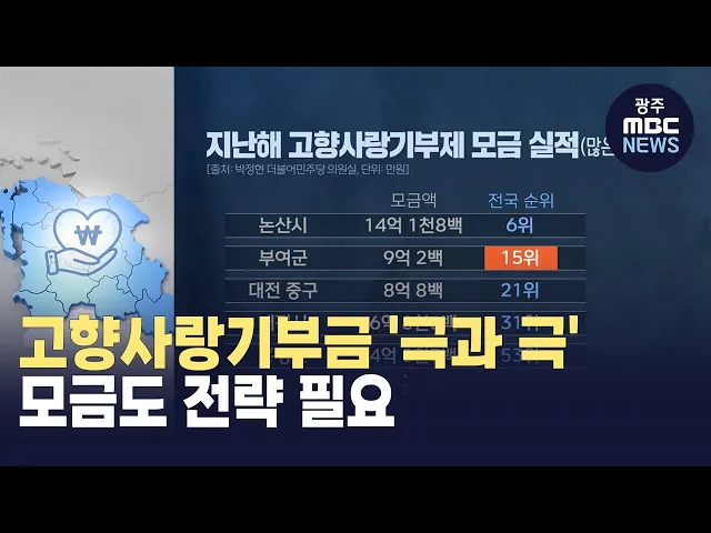 (앵커)지방자치단체에 기부하면 세제 혜택과 함께 답례품을 받을 수 있는 고향사랑기부제,어느덧 시행 3년 차에 접어들었습니다.지역의 특산품을 앞세워 기부를 이끌어낸 지자체도 있지만 모금 실적이 저조한 곳도 있어 모금도 전략이 필요하다는 지적이 나옵니다.대전문화방송 김성국 기자가 취재했습니다.(기자)논산의 한...