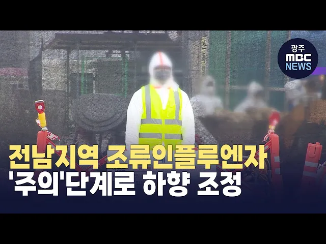 전남지역 조류인플루엔자 위기 경보가'주의' 단계로 하향 조정됐습니다.위기경보 하향은 겨울철새 북상으로 개체 수가 줄고전남의 발생 방역지역이 모두 해제되는 등 고병원성 조류인플루엔자 추가 발생과확산 위험도가 낮아졌다는 판단에 따른 것입니다.전남도는 그러나,여전히 봄철 추가 발생 우려가 있어경각심을 갖고 ...