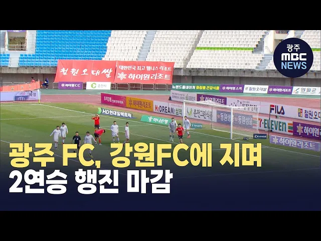 프로축구 광주 FC가강원에 덜미를 잡히며 2연승 행진을 마감했습니다.광주 FC는오늘(13) 열린 강원 FC와의 원정 경기에서전반 16분 강원 최병찬에게 결승골을 내주며 0대 1로 패했습니다.최근 2연승 행진을 달렸던 광주 FC는이정효 감독이 퇴장 이후 돌아온 첫 경기에서쓴맛을 보며 아쉬움을 삼켰습니다.한편 광주 FC는 오...