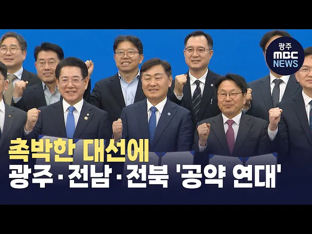 (앵커)광주와 전남, 전북이 경제권을 하나로 묶는 이른바 '호남권 메가시티 경제동맹'에 사활을 걸고 했습니다.각 정당에 6.3대선 호남권 공동공약으로 건의하는 등 전략적 연대에 나섰습니다.다른 시도와의 공약 경쟁에서 지분을 얼마나 확보하느냐가 관건이 될 전망입니다.임지은기자입니다.(기자)지난달 한자리에 모인 ...